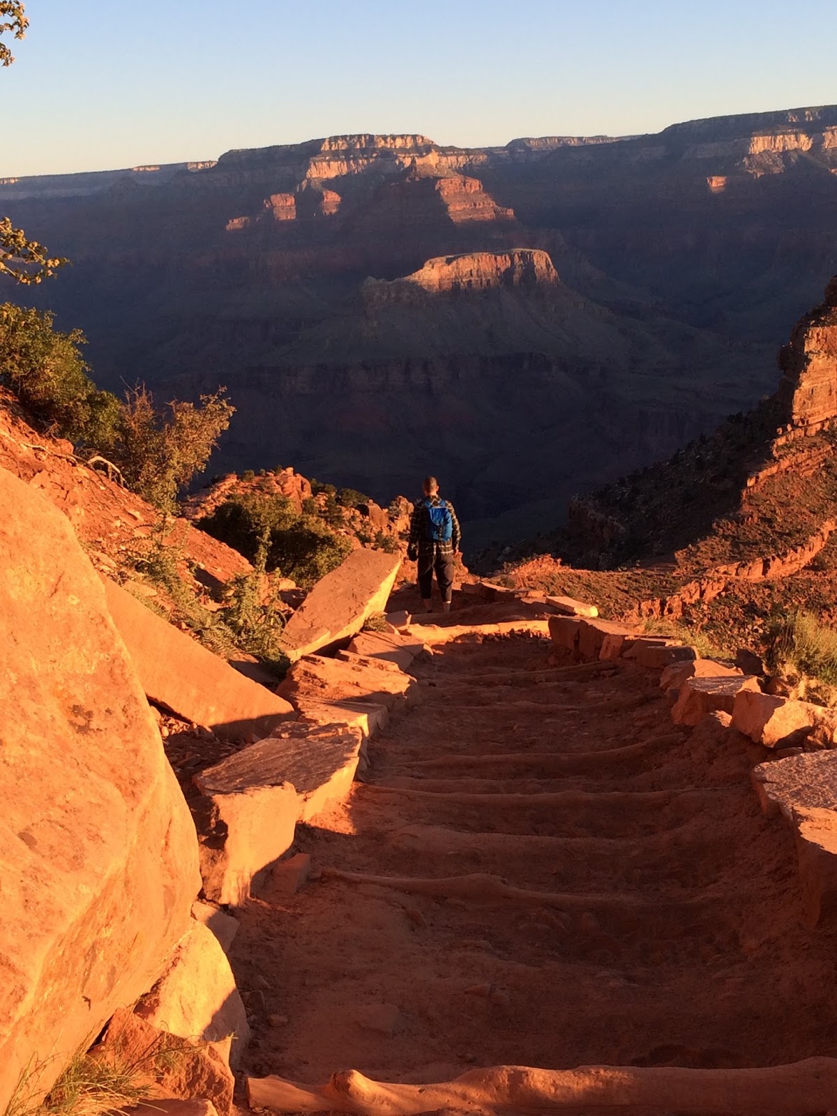 The river! Bright Angel had a good bit of shade and I was thankful. It didn't feel as steep as South Kaibab. We stopped for water twice. The last three miles were tough for me, with the last mile seriously messing up our average. There were quite a few people on the trail for the last two miles, who had come down to check out the views. Shey was a trooper and was cool about me stopping when needed. We finished in time for lunch and weren't any worse for the wear.